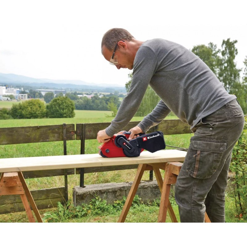 Einhell TC-BS 8038 je pásová bruska o výkonu 800 W s vysokou rychlostí odběru. Jednoduchá a rychlá výměna brusného pásu zajišťuje nekomplikovanou manipulaci při použití. Součástí dodávky je brusný pás pro okamžité zahájení práce. Jemné nastavení pro optimální výsledky broušení. Pro bezpečné uchycení pásové brusky je vybaven přídavnou rukojetí pro ideální vedení po dřevě. Přídavná keramická vložka zajišťuje bezpečnost v případě nesprávného nastavení pásu. I přes broušení udržujte čisté pracoviště, které uspěje s integrovaným odsáváním sáčkem.