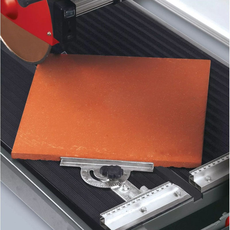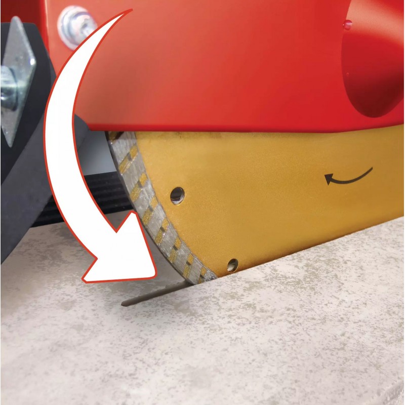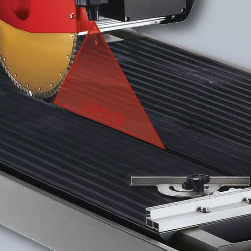 Řezačka kamene TE-SC 920 L je spolehlivý a vysoce kvalitní přístroj, s jehož pomocí lze rychle a přesně řezat kamenné a betonové desky, cihly i obklady a dlaždice. Její robustní motor poskytuje prostřednictvím 2 200 W dostatečný výkon, aby turbo-diamantový řezací kotouč o průměru 300 mm mohl plynule procházet tvrdými materiály jako jsou žula a mramor. Řezačka RT-SC 920 L disponuje hlavou motoru plynule naklápěcí od 0° do 45° s posuvem motoru vybaveným 4 kuličkovými ložisky, pomocí kterého lze díky extra dlouhému tahu řezat materiál o délce až 920 mm. Díky úhlově přesně nastavitelnému úhlovému dorazu z hliníku lze snadno provádět pokosové, dvojité pokosové nebo jolly řezy. Pohyblivé uložení hlavy motoru navíc umožňuje provádění ponorných řezů. Velký pracovní stůl s protiskluzovou gumovou úpravou spočívá na robustním podstavci. Odnímatelný laser usnadňuje přesné řezání vyznačením čáry řezu na obrobku. Vodu pro chlazení řezacího kotouče dopravuje stroj z masivní vany pro zachycení vody vyrobené z ocelového plechu pomocí integrovaného vodního čerpadla.