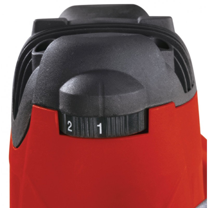 Detailní pohled na regulační kolečko otáček horní frézky Einhell TE-RO 1255 E.
