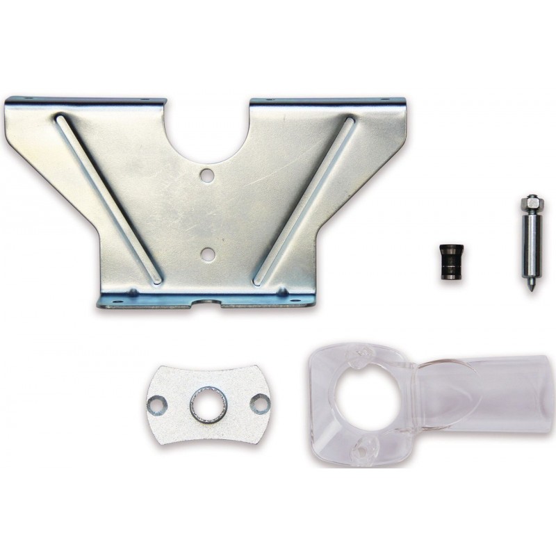 Dodávka zahrnuje kleštiny (6 a 8 mm), paralelní doraz, středicí trn, kopírovací kroužek a nářadí pro výměnu frézy.