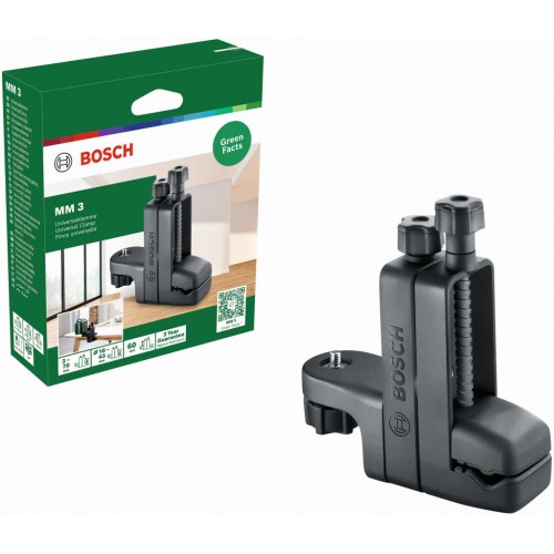 Praktická univerzální svorka MM 3 představuje rychlé, flexibilní a precizní řešení na polohování laserové čáry do požadované výšky a rozšiřuje možnosti používání. Široký rozsah upínání 3–70 mm umožňuje všestranné polohování vodorovně i svisle a jemné seřízení výšky v rozsahu 60 mm zajišťuje vysokou přesnost. Upínací rameno otočné o 360° zajišťuje snadné naklápění a pohodlné používání při práci blízko stropu díky otočení svorky o 180°. Lze jej pohodlně používat se všemi křížovými čárovými lasery se závitem 1". Snadné, rychlé, nekomplikované.