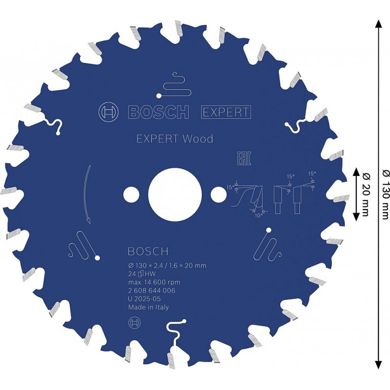 V závislosti na počtu zubů je možné se všemi pilovými kotouči Expert for Wood, které se vyznačují geometrií zubu ATB (Alternate Top Bevel), dosahovat různých výsledků: je-li kotouč opatřen vysokým počtem zubů, vytváří čisté řezy, malý počet zubů pak zaručuje solidní a efektivní řezy.