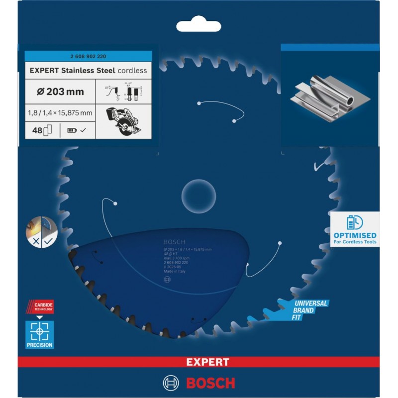 BOSCH EXPERT Stainless Steel cordless Pilový kotouč, 203 × 1,8/1,4 × 15,87 mm, T48 2608902220