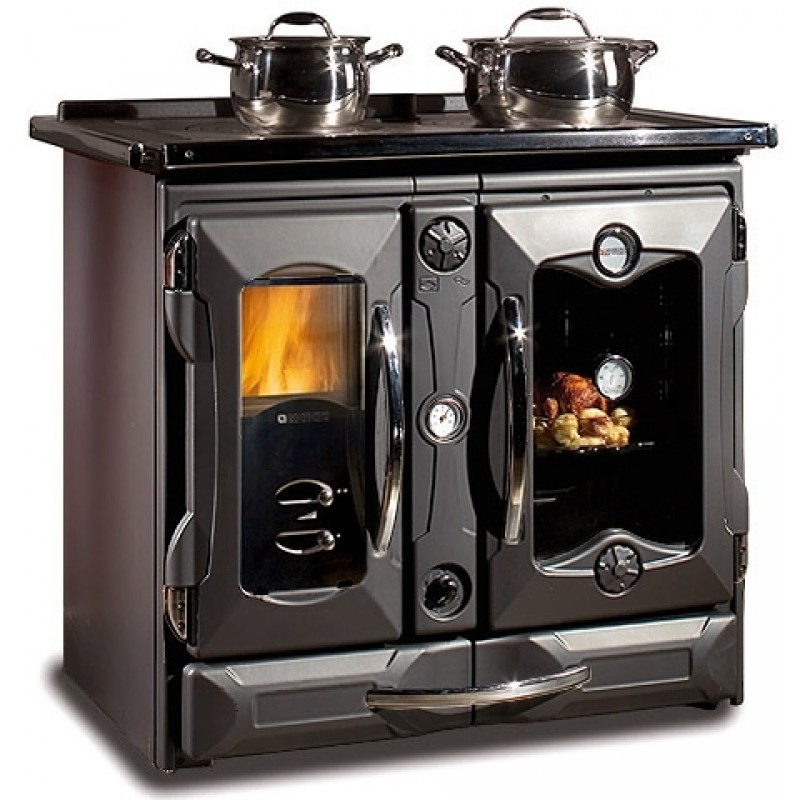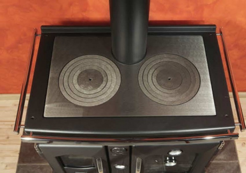 Sporák nejvyšší třídy od společnosti Nordica je skutečně ten nejlepší. Všechna dvířka, plotna a rošt jsou z litiny. Dvojité krbové zasklení snižuje vyzářené teplo, nerezové vnitřní části spalovací cesty, kouřovod vyvedený uprostřed a termostatem řízený přiváděný vzduch. Funkční trouba na pečení a výkonný výměník do ústředního topení zvládne i ohřev vody do bojleru. Účinnost 83 % a emise CO pod 0,12% mají podíl na malé spotřebě a malému zanášení kouřovodů a komínu.