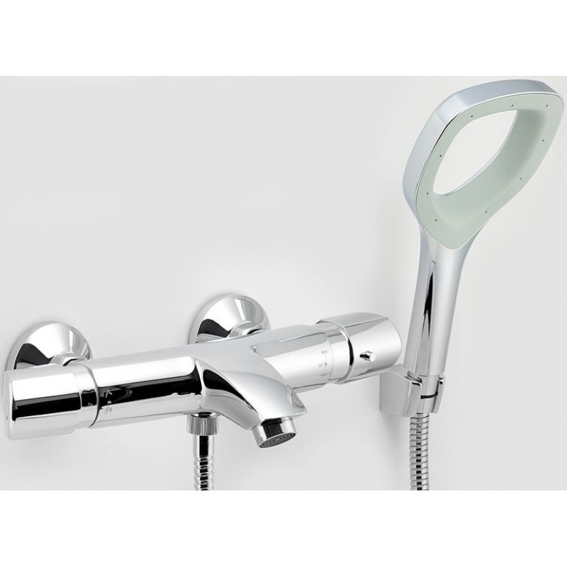 Kvalitní a odolná termostatická kartuše KEROX s prodlouženou zárukou 7 let. Prvotřídní chromové provedení. Vanová termostatická nástěnná baterie s roztečí 150 mm a přepínacím ventilem. Součástí balení je kovová sprchová hadice 150 cm, pevný držák sprchy a úsporná ruční sprcha.
