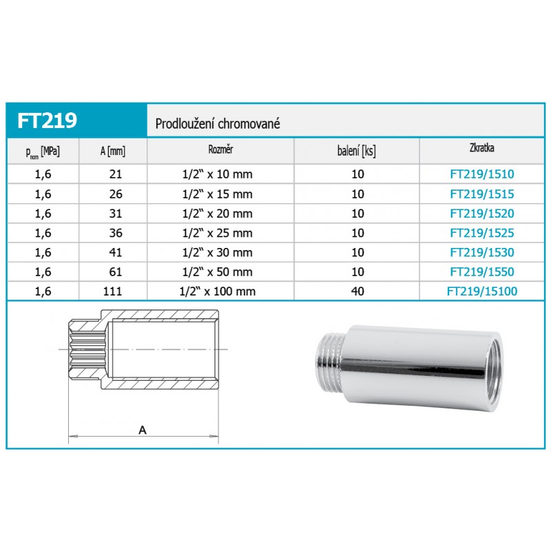 NOVASERVIS Prodloužení chromové 1/2"X100MM FT219/15100