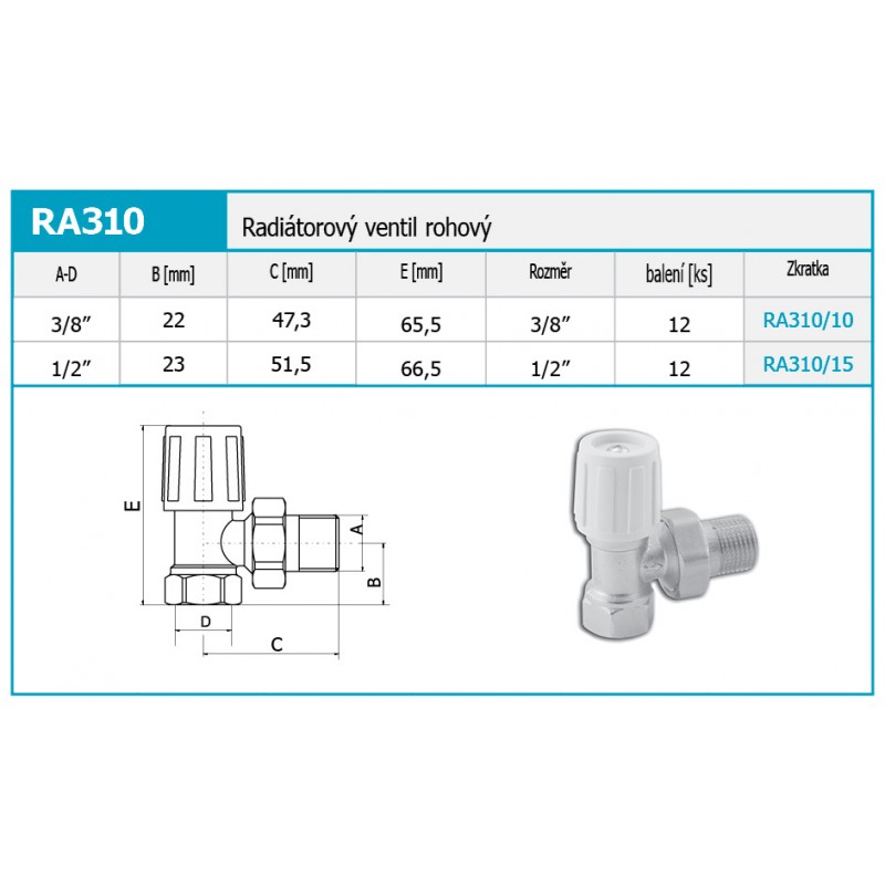 NOVASERVIS radiátorový ventil rohový 1/2" RA310/15