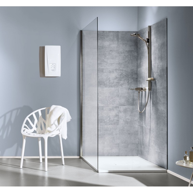 Ovládání je jednoduché a intuitivní pomocí dotykového tlačítka s výběrem pěti přednastavených teplot. Tlakové provedení umožňuje napojení na jedno nebo více odběrných míst, například umyvadlo, sprchu nebo dřez. Nízký spínací průtok již od 1,5 l/min zaručuje spolehlivý provoz i s úspornými armaturami.
