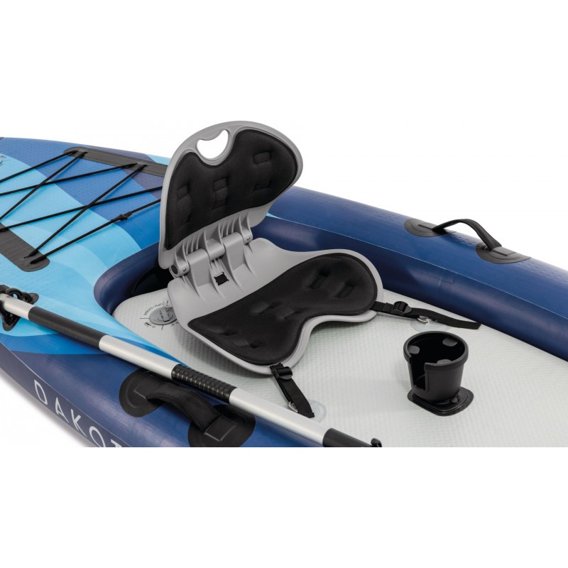 Kajak INTEX Dakota Quest je navržen pro maximální variabilitu a pohodlí. Díky možnosti použití v sedě i ve stoje si snadno přizpůsobíte styl jízdy podle aktuálních potřeb. Stabilní konstrukce s dvojitou stěnou Drop Stitch zajišťuje pevnost srovnatelnou s pevnými paddleboardy, zatímco měkký povrch a ergonomické doplňky poskytují komfort i při delších výletech. Velká odnímatelná ploutev zajišťuje výbornou směrovou stabilitu a snadné ovládání i na klidnějších i mírně zvlněných vodách. Díky lehké konstrukci a praktickému transportnímu batohu je kajak snadno přenosný a připravený k použití během několika minut. Ideální volba pro rekreační pádlování, objevování nových míst i rybaření.