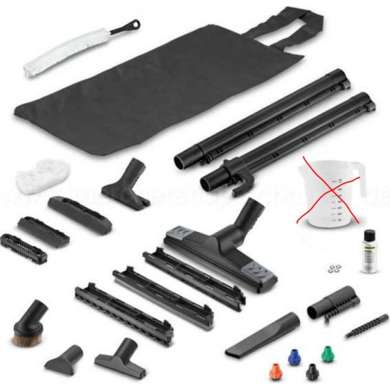 - Sada na čištění podlah s funkcí páry a vysávání, 3 různé nástavce pro tvrdé a kobercové podlahy a 2 parní sací trubky á 0,5 m