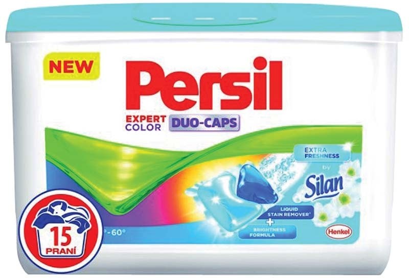 Persil gel DuoCaps 15 praní Color FBS tabsDíky nové inovativní receptuře s novým účinným enzymem, který působí již od 20 °C, vypere Persil Expert Fresh Pearls by Silan i ty nejodolnější skvrny, aniž by poškodil vaše oblečení.