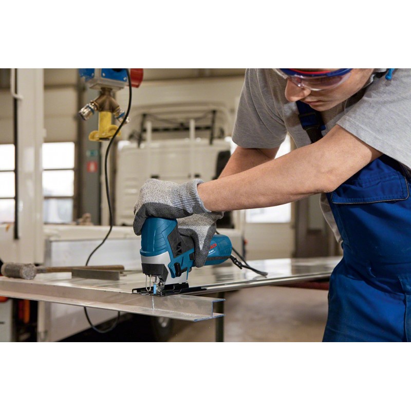 Síťová kmitací pila GST 90 E Professional nabízí spolehlivý výkon na základní úrovni. Válcová rukojeť umožňuje plynulou každodenní práci i při řezání ze spodní strany. Beznástrojový systém kmitací pily Bosch SDS usnadňuje výměnu pilových plátků. Spolehlivý 650W motor navíc zajišťuje rychlý postup práce.