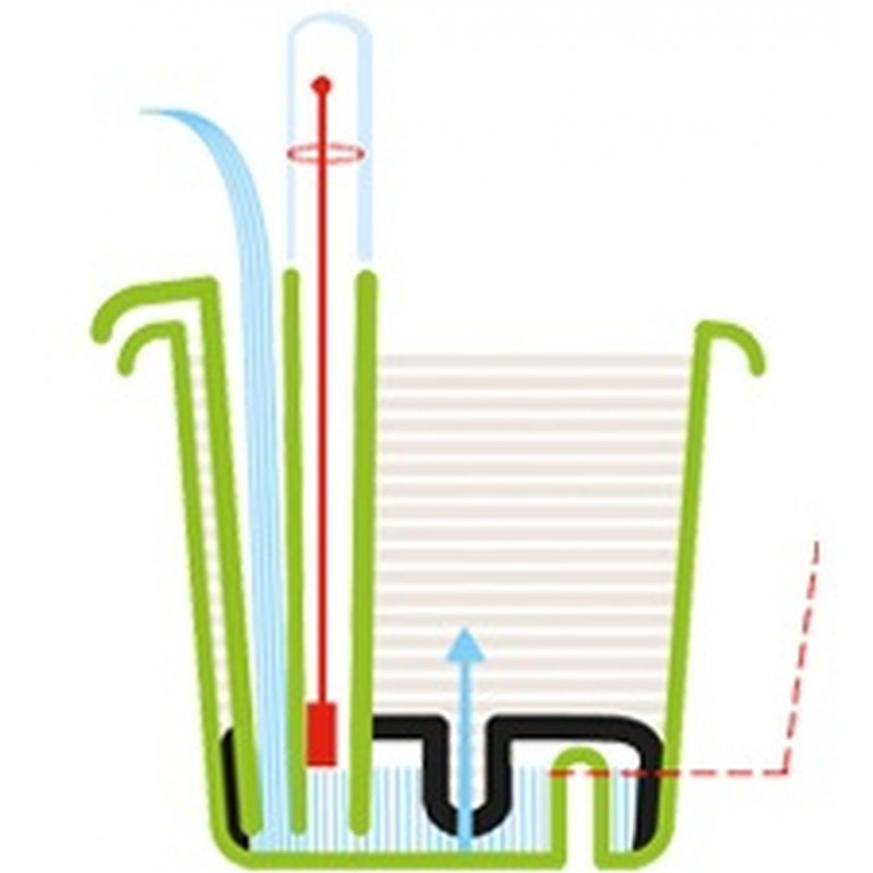 Dvoukomorové řešení zajišťuje nepřetržité měření hladiny vody, a to i při nalevání. Rozměrné zásobníky na vodu zajišťující dlouhodobé dodávání vody. Vhodně tvarovaný nalévací otvor se snadným měřením hladiny vody.