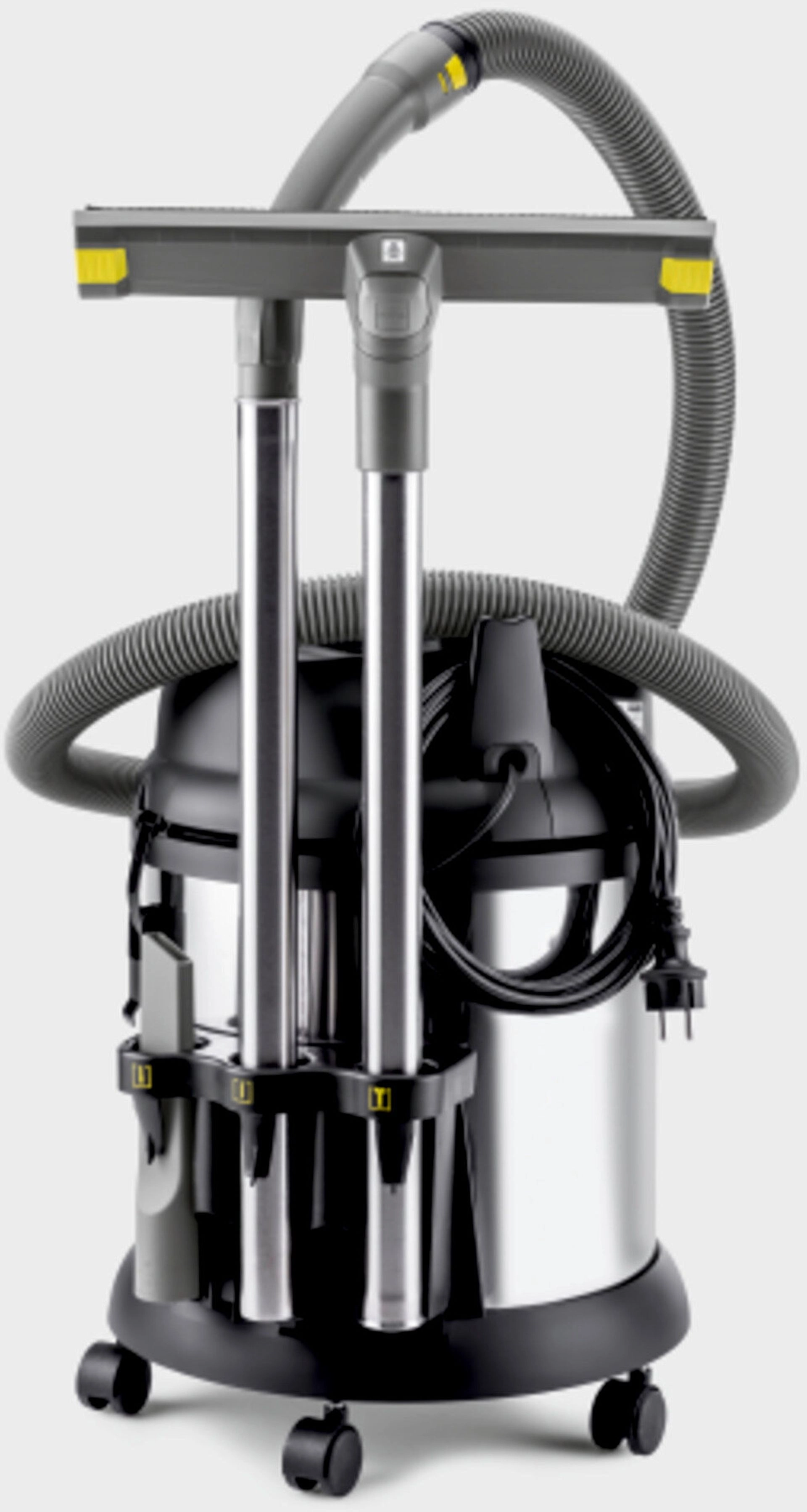 KÄRCHER NT 27/1 Me Advanced je ideální volbou pro profesionály i domácí dílny, kteří hledají výkonný, spolehlivý a kompaktní mokro-suchý vysavač pro všestranné použití, který nabízí nejen vysoký sací výkon a odolnou konstrukci, ale také pohodlnou manipulaci, snadné přepínání mezi mokrým a suchým vysáváním, praktické uložení příslušenství a dlouhou životnost.