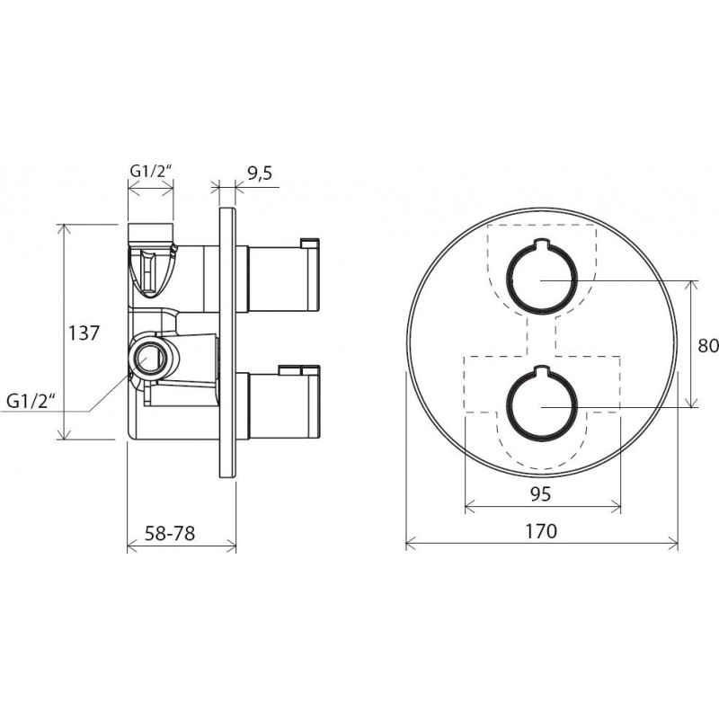 RAVAK Termo TE 061.00 Sprchová termostatická podomítková baterie X070037Termo TE 061.00 s přepínačem