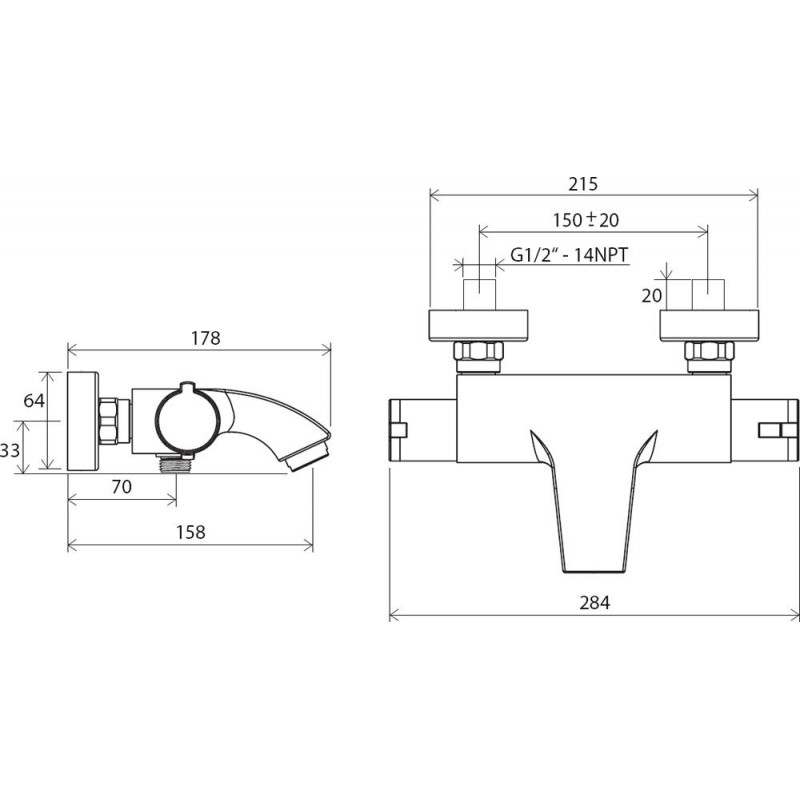 RAVAK TERMO TE 082.00/150 Termostatická vanová nástěnná baterie X070046