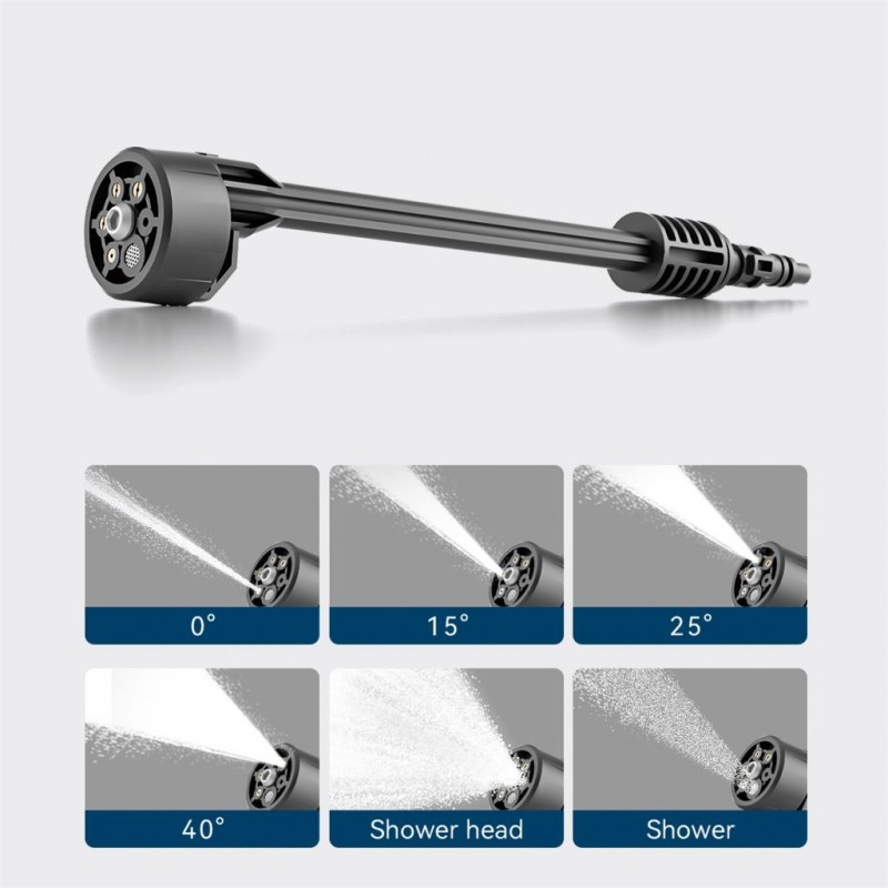 Je vybavena moderním bezuhlíkovým motorem PowerMax, který nabízí vysoký výkon, tichý chod a bezúdržbový provoz. Díky přehlednému displeji lze snadno nastavit tři úrovně tlaku ostřiku a zároveň sledovat aktuální stav nabití baterie. Součástí stroje je také multifunkční šestipolohová tryska – čtyři polohy poskytují vysokotlaký paprsek s úhlem 0°, 15°, 25° nebo 40°, další dvě polohy slouží k oplachu či zalévání s nízkým tlakem a širokým rozptylem.