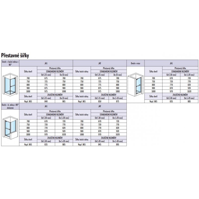 RONAL JAT JAZZ-Line boční stěna v 90° pro JA1, 100 cm, aluchrom/sklo linie JAT10005051Boční stěna v 90° pro jednokřídlé dveře JA1.