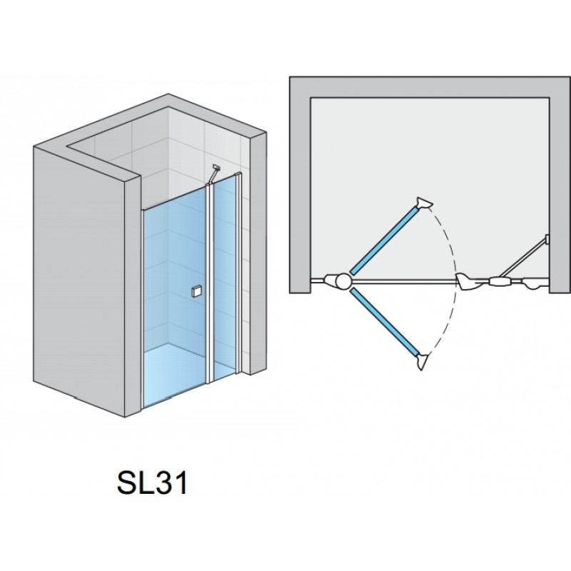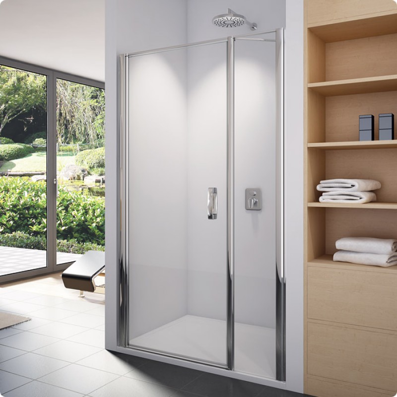 RONAL SL31 Swing-Line jednokřídlé dveře + stěna, 120 cm, bílá/čiré sklo SL13112000407Jednokřídlé dveře s pantem u zdi a s pevnou stěnou v rovině