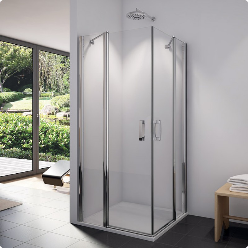 RONAL SLE2 Swing-Line rohový vstup-dvoudílné dveře, pravé, 100cm, chrom/linie SLE2D10005051Rohový vstup dvoudílný s křídlovými dveřmi