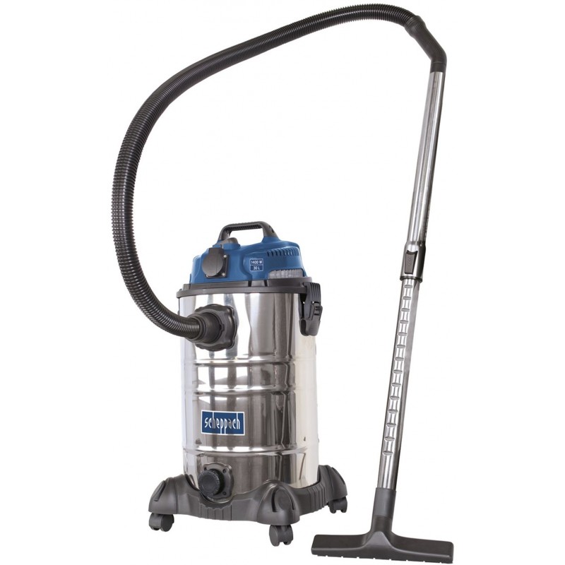 Scheppach ASP 30-ES je výkonný vysavač na mokré i suché vysávání s kapacitou zásobníku 30 l. Je skvěle vybavený. Má odolné tělo z nerezu se spodní výpustí vody, čtyři otočná kolečka a velké madlo pro snadnou manipulaci, integrované držáky na dlouhý kabel i příslušenství, integrovaný vývod pro funkci foukání, díky které vyfoukáte nečistoty i z těžko přístupných míst, dlouhou hadici o velkém průměru 38 mm, zásuvku na 230 V pro připojení elektrického nářadí s automatickým spínačem a beznástrojový systém pro snadnou a rychlou výměnu filtru. Díky velké délce kabelu i hadice má velký dosah. Celý vysavač je velmi lehký a snadno se ovládá. Díky konstrukci na výšku nepotřebuje ani příliš místa na skladování. Podlahová hubice má přepínání pro hladké podlahy a koberce. Vysavač se dodává s bohatým příslušenstvím, včetně velmi účinného Hepa filtru. Vysavač se skvěle hodí do domácností, dílen, garáží i pro potřeby řemeslníků.Příslušenství: