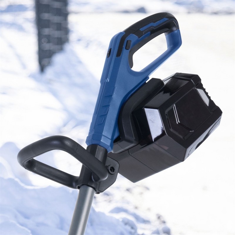 Stroj umožňuje nastavení směru vyhazování sněhu vlevo, vpravo nebo přímo vpřed. Rychlost můžete upravovat v šesti úrovních podle hloubky a typu sněhu. Maximální pracovní šířka je 40 cm a fréza zvládne odklidit až 20 cm vysokou vrstvu čerstvého sněhu. Pro bezpečné používání je fréza vybavena bezpečnostním spínačem, který zamezuje nechtěnému spuštění. Zatímco hlavní ergonomická rukojeť s měkkým protiskluzovým povrchem zajišťuje pohodlné ovládání, další přídavná umožňuje práci oběma rukama. Fréza se navíc snadno přenáší díky integrovanému madlu a je i samostatně stojící, což usnadňuje její skladování. S maximální vzdáleností vyhazování sněhu až 6 metrů vám tato fréza značně usnadní úklidové práce. Stroj se dodává bez baterie a nabíječky.