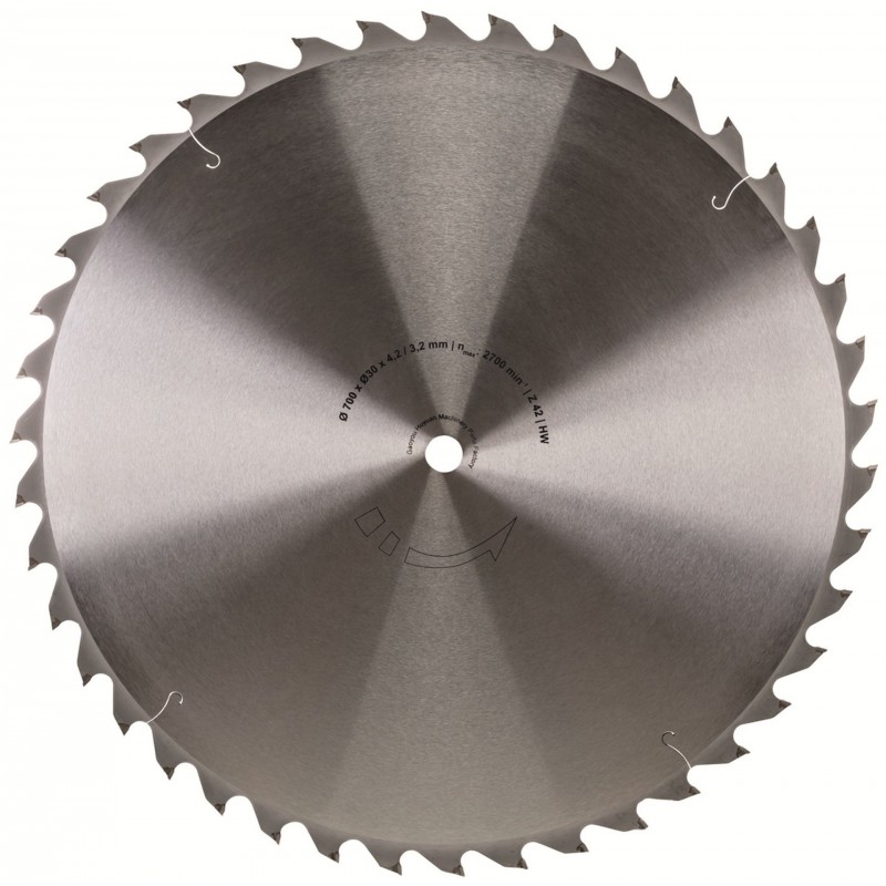 Kvalitní pilový kotouč o průměru 700 mm, speciálně určený pro kolébkové pily Scheppach HS 720 a HS 730.