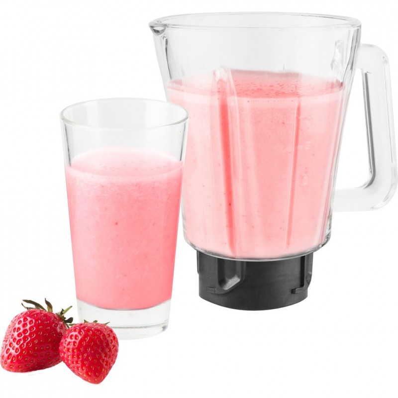 Nádoba je vyrobena z vysoce kvalitního teplu odolného skla – díky tomu máte možnost zpracování horkých surovin (100 °C)