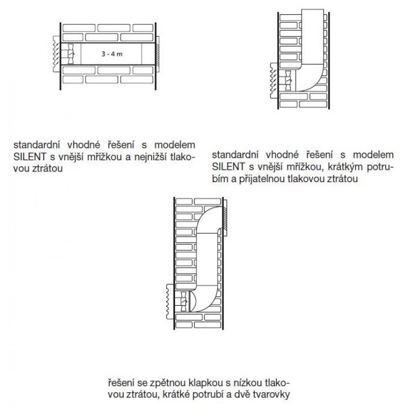 Skříň je z nárazuvzdorného plastu, barva je standardně bílá, k dispozici jsou i další barevná provedení. Skříň je určena k montáži na stěnu. Ventilátory obsahují zpětnou klapku, jejíž řešení je patentováno.