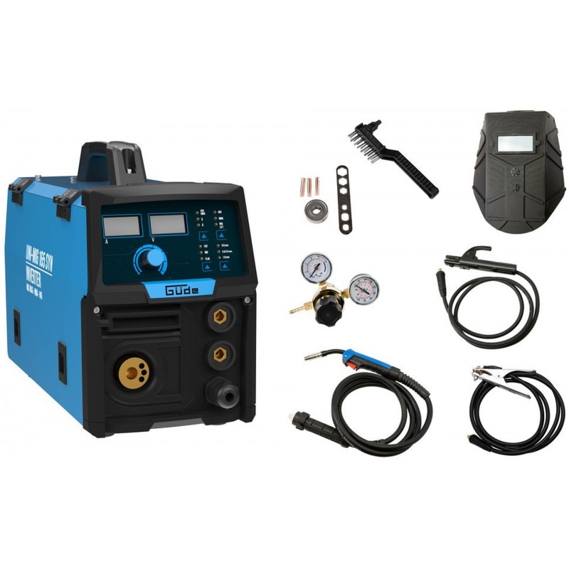 Multifunkční invertorová svářečka Güde, určená pro obloukové svařování metodami MMA, FCAW, MIG/MAG a WIG.