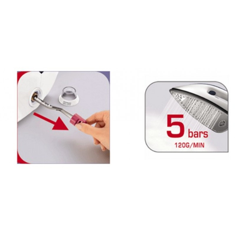 unikátní patentovaný odvápňovací systém Anti-Calc prodlužuje významně životnost generátoru: automaticky zachycuje nečistoty z vody, snadná údržba, šetří čas při i po žehlení