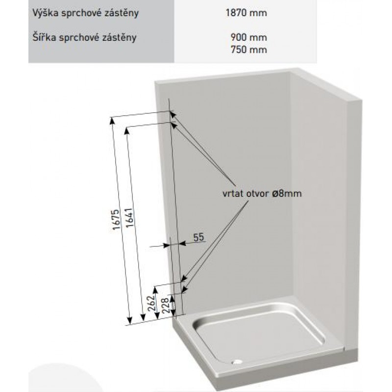 TEIKO NBS 75 L sprchová boční stěna levá, čiré sklo V333075L52T80003Rozměry: 75 x 187 cm