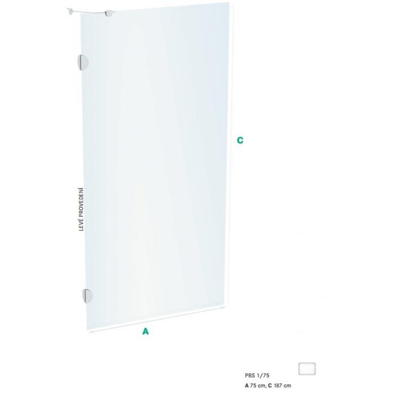 TEIKO PBS 75 S L boční stěna levá čiré sklo V332075L52T80003Rozměry: 72 x 187 cm