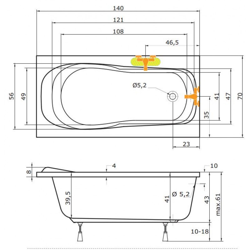 TEIKO Vana Alea obdélníková 140 x 70 cm - HTP systém ECO HYDRO V213140N04T01211Rozměry: 140 x 70 x 41 cm