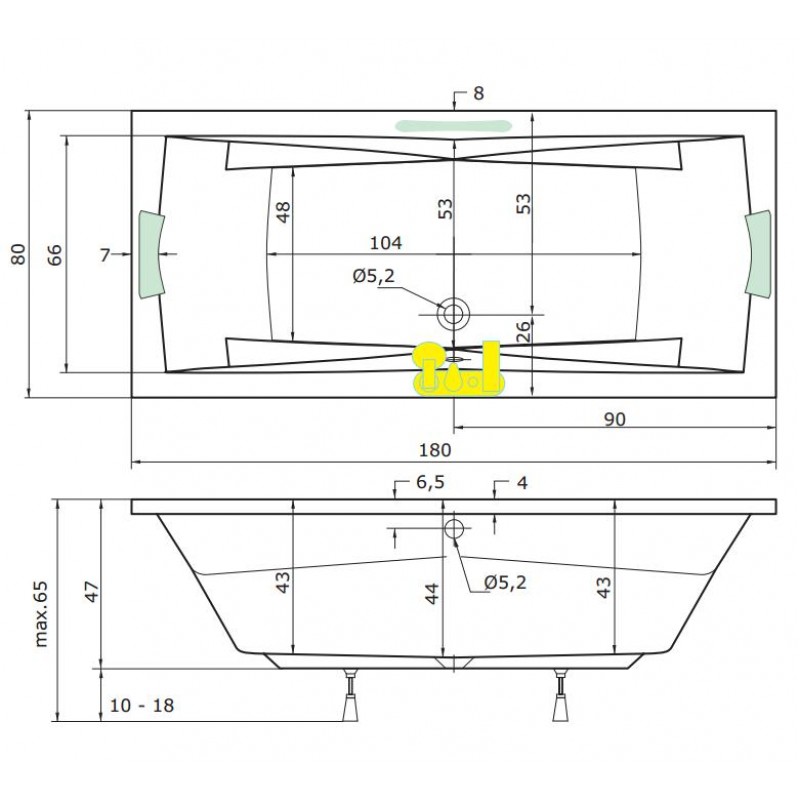- 2 ks minitrysek (u obdélníkových van montovány do nohou, u rohových van do zad - dle možností montážních ploch, buď do zad nebo do nohou)