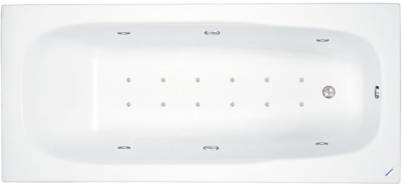 Hydromasážní systém je osazen 4-mi maxitryskami a 2-mi minitryskami. Tyto vytvářejí příjemný proud vody obohacený vzduchem. Moderní regulační a ovládací prvky zaručují velmi jednoduché a pohodlné ovládání. Spuštění a vypnutí se provádí pneumatickým spínačem, který je umístěn na horním okraji vany. Vzduchová regulace obohacuje vodní masáž vzduchem, který mění účinky masáže. Intenzitu masáže lze měnit otevíráním nebo zavíráním maxitrysek - max. 2 ks současně.