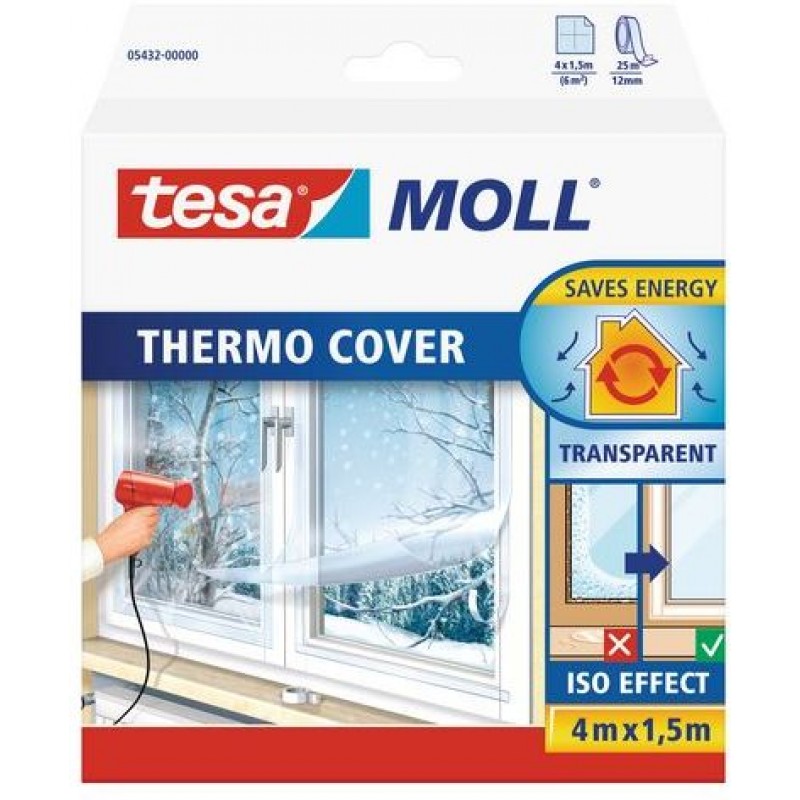 TESA MOLL Thermo Cover, transparentní fólie na rám okna, průhledná, 4m x 1,5m 05432-00000-00Termoizolační fólie na okna Thermocover - Izolační fólie na staré nebo jednoduché okenní rámy pro úsporu energií.