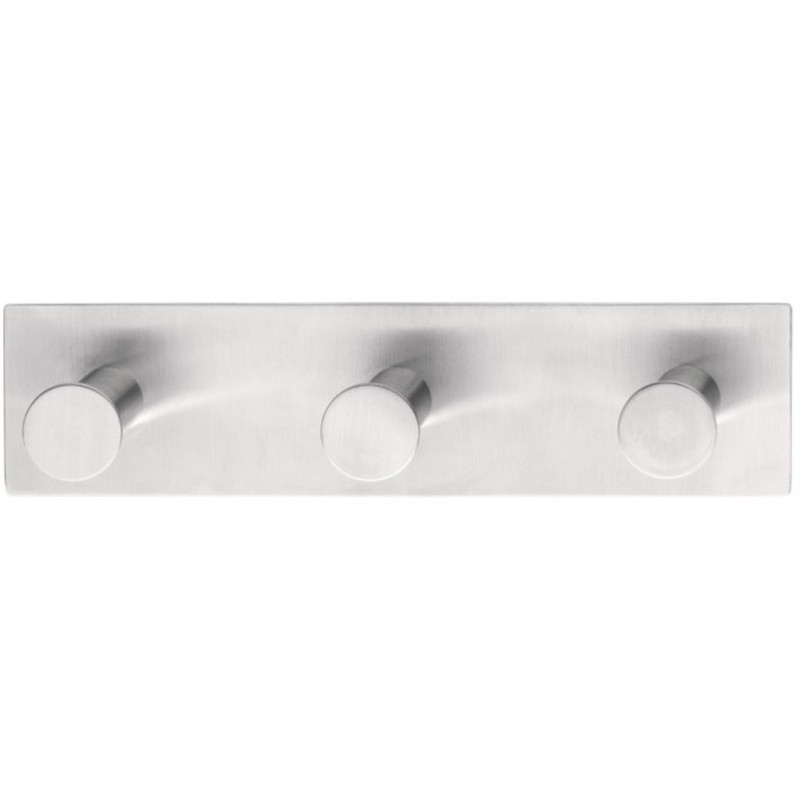 TESA Powerbutton háček CLASSIC trojháček, matná nerez ocel, obdélníkový, nosnost 12kg 59334-00000-00Kovový tesa® Powerbutton trojháček Classic kombinuje tři háčky na dekorativní liště z kartáčované nerezové oceli. Je navržen pro zavěšení těžších věcí, jako jsou například župany nebo kabáty, a to až do celkové váhy 12 kg. Díky patentované technologii tesa® Powerbutton tento klasický trojháček snadno připevníte bez vrtání nebo použití nářadí. Použití speciálního lepidla poskytuje odolnost spoje vůči vodě a teplu na většině pevných podkladů*. Zvláště na obkladech může být háček snadno odstraněn bez zanechání stop a znovu použitý na jiném místě.
