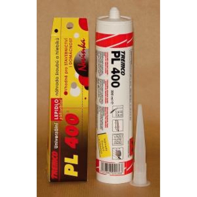 TREMCO PL 400 jednosložkové univerzální lepidloUniverzální lepidlo s únosností 28 kg/cm2. Pro lepení zrcadel, PVC a obkladových materiálů.