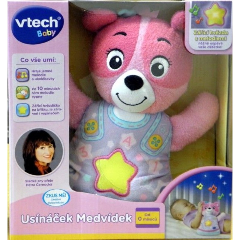 Usínáček Medvídek - růžový, Vtech, pro nejmenš,í plyš, 22cm, na baterie, se zvukem, se světlemTento roztomilý medvídek se stane oblíbenou usínací hračou vašeho dítěte. Usínáček hraje krátké ukolébavky – ZPĚV PETRA ČERNOCKÁ