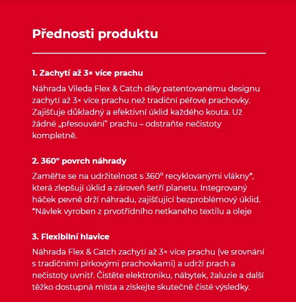 Užijte si čistší domov s účinným zachycováním prachu Flex & Catch, které zachytí až 3× více prachu než tradiční péřové prachovky.