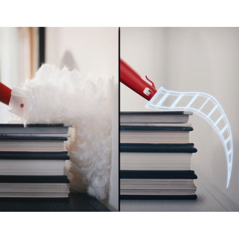 Snadno čistěte těžko nedostupná místa, od polic a žaluzií po zrcadla, skříně a další. Inovativní design zahrnuje integrovaný háček, který udrží hlavici pevně na místě během utírání prachu a zajišťuje čistý a nepřerušovaný úklid.