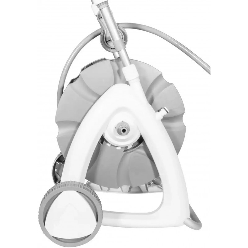 Součástí je 30 m textilní hadice, která poskytuje dostatečný dosah pro běžné zahradní práce. Ergonomická konstrukce a kolečka usnadňují manipulaci po zahradě.