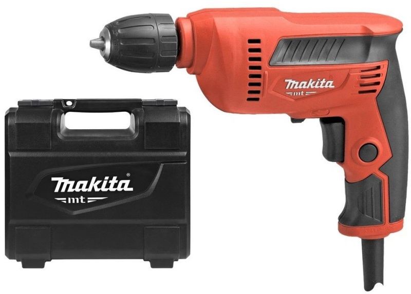 MAKITA M6002K je spolehlivá elektrická vrtačka z řady MT, která nabízí ideální kombinaci výkonu, kompaktních rozměrů a jednoduchého ovládání. Díky výkonu 450 W je vhodná pro běžné vrtání do dřeva i kovu, a to jak v dílně, tak při montážních pracích.