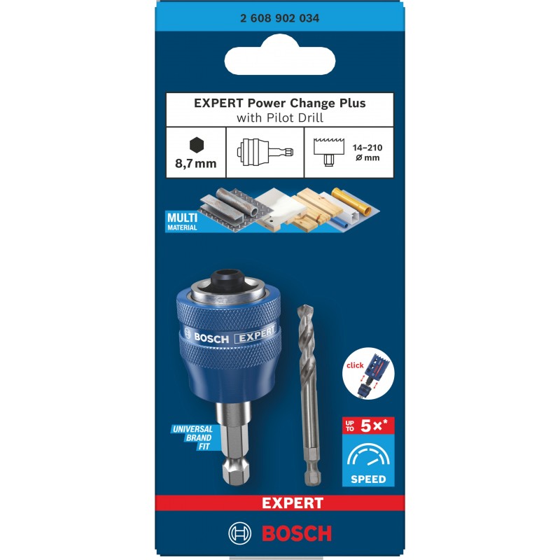 Děrovky jsou skvělým nástrojem, ale jejich upínání do vrtačky bylo s ohledem na přesnost výsledku velmi pracné. Profesionálové tak přicházeli o čas i peníze. S adaptérem EXPERT Power Change Plus můžete vyměnit děrovku během několika sekund díky chytrému upínacímu systému Bosch na jedno kliknutí.