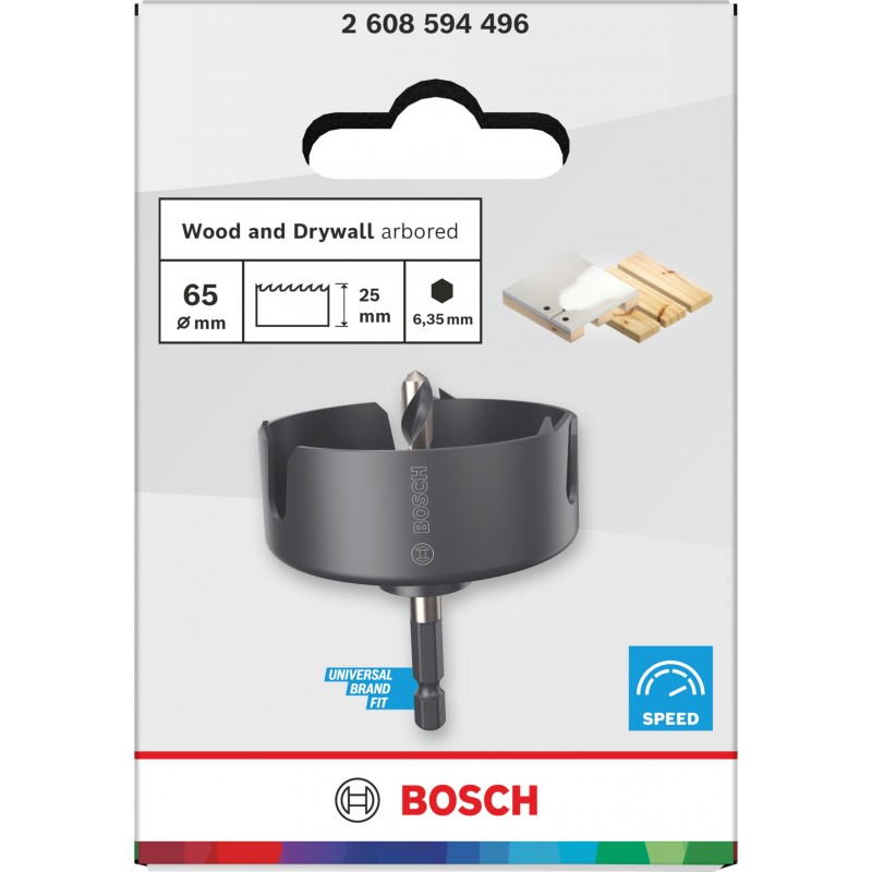 BOSCH Děrovka s adaptérem na dřevo a sádrokarton, 65 × 27 mm 2608594496