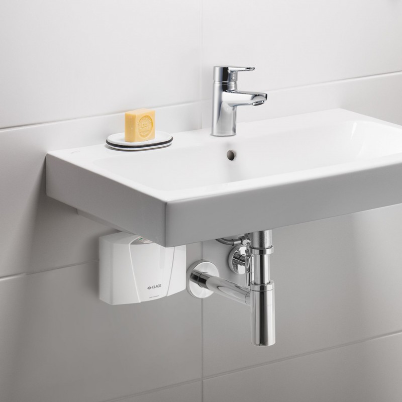 CLAGE MCX 3 je elektronicky řízený malý průtokový ohřívač vody určený k energeticky úsporné přípravě teplé vody přímo u umyvadla. Ohřívač je určen pro tlakovou instalaci s běžnými armaturami.