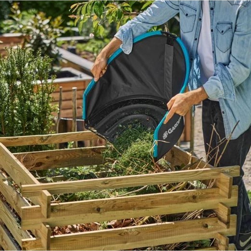 Pevná konstrukce zajišťuje stabilitu při manipulaci a umožňuje snadné vysypávání bez rozsypání obsahu. Koš lze po sejmutí použít také jako lopatku na zahradní odpad. Po ukončení práce jej jednoduše složíte do kompaktní velikosti a pomocí integrovaného háku zavěsíte pro úsporné skladování.