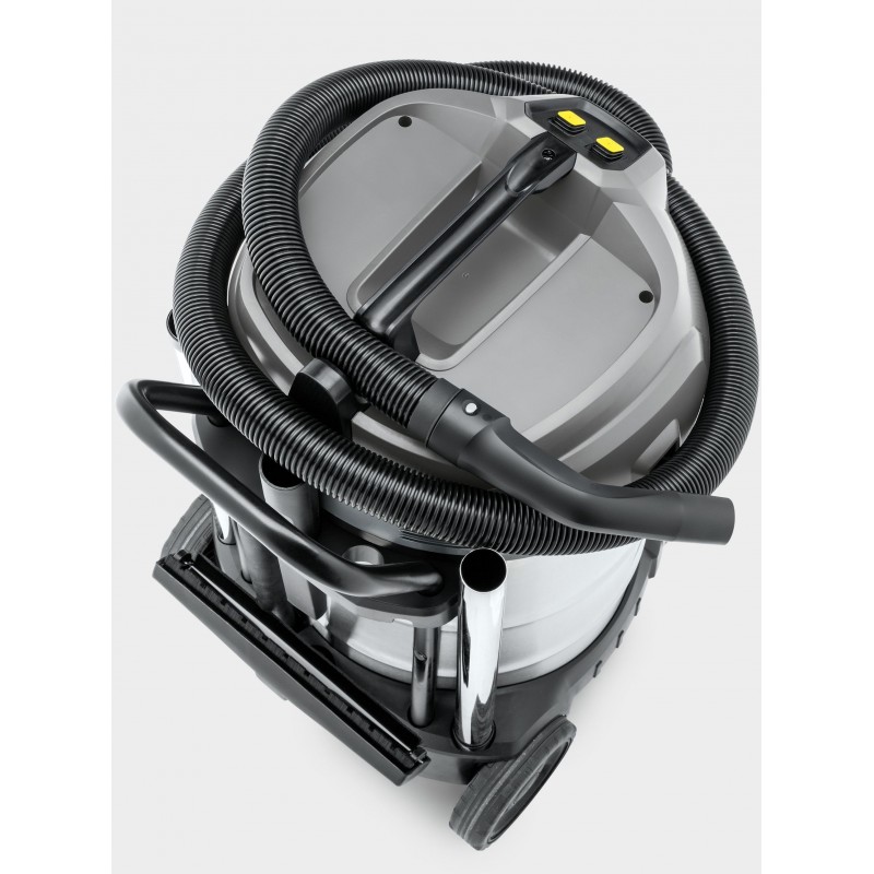 KÄRCHER NT 70/2 Me Classic Edition je profesionální mokro-suchý vysavač, který spolehlivě odstraní mokré i suché nečistoty. Díky dvojici výkonných motorů a robustní 70l nádobě z ušlechtilé oceli zvládne i náročný průmyslový provoz. Je ideální pro úklid vozidel, skladů, dílen i výrobních hal.