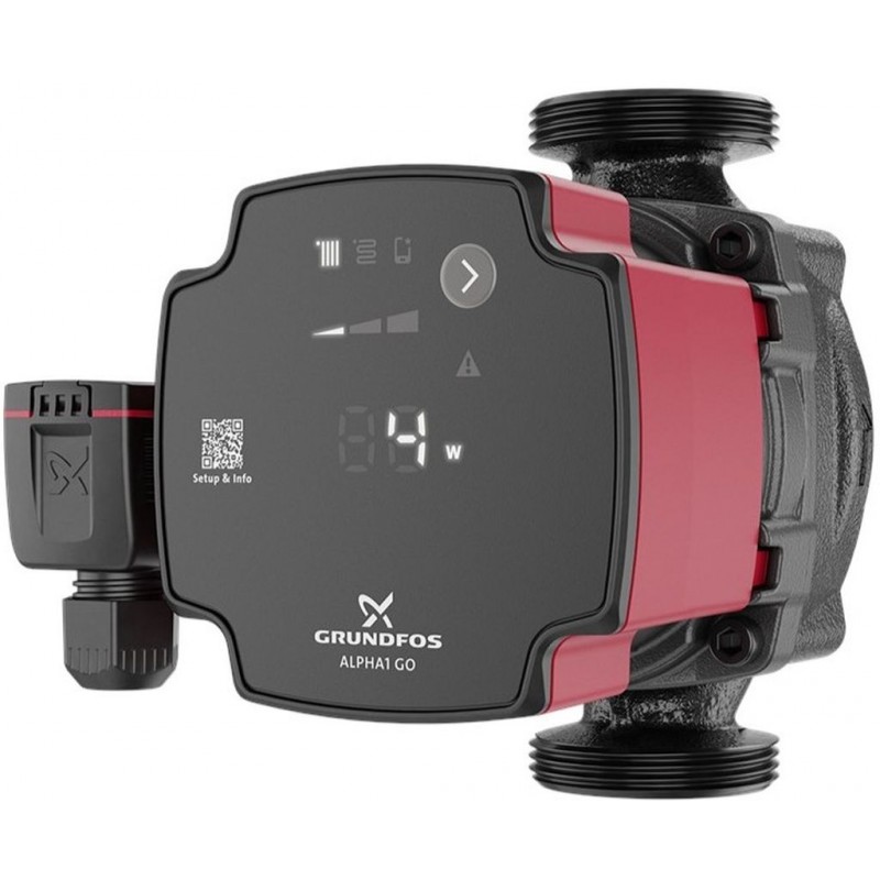 Kompatibilita a výměna: ALPHA1 GO je navrženo pro výměnu čerpadel Grundfos UPS integrovaných v kotlích a sestavách. Umožňuje replikaci křivek původního čerpadla pomocí aplikace Grundfos GO a je vhodné jako náhrada většiny samostatných čerpadel. Kompatibilitu se starším čerpadlem ověříte v aplikaci Grundfos GO.
